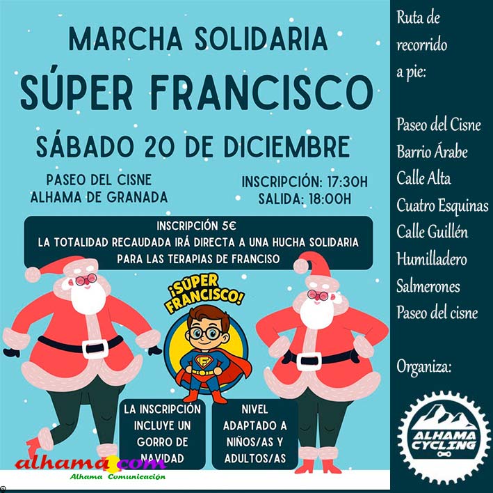 La actividad será no competitiva y apta para todas las edades. La marcha comenzará en el Paseo del Cisne, el sábado día 20 a las 6 de la tarde.