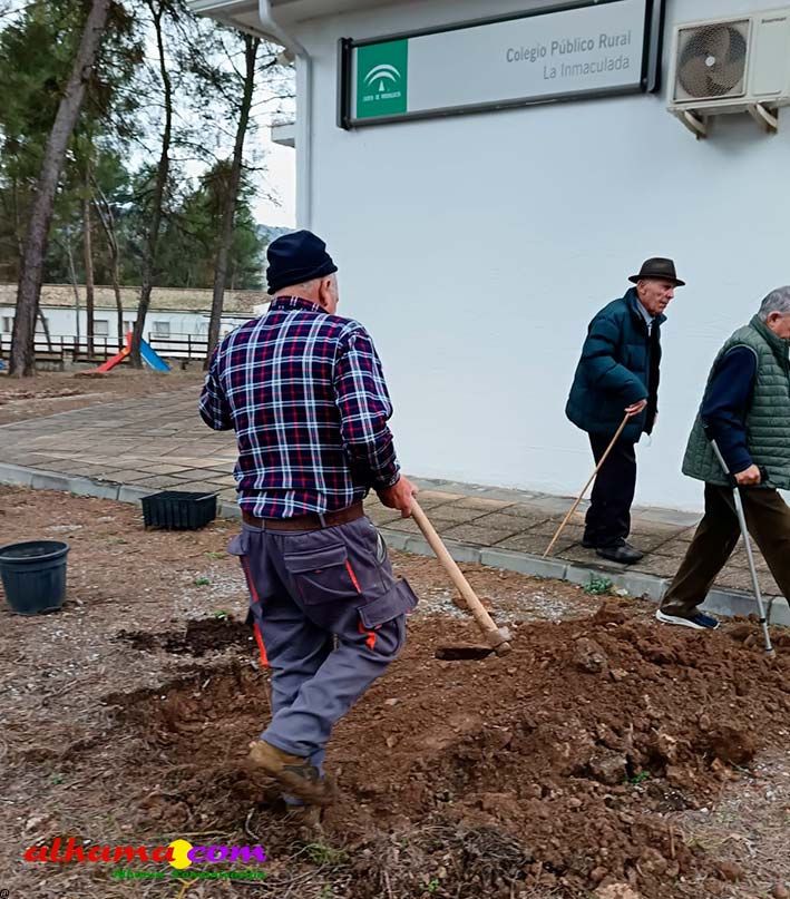 Antonio F., Rafael, Vicente, Manolo M., Alejandro, Lisardo, Antonio R., Manolo F. y Julián hacen un alarde de juventud y fuerza y durante dos horas trabajan para cambiar la imagen de una de las zonas más bonitas de nuestro pueblo; su escuela y su entorno. Entre risas y anécdotas de nuestros “sabios mayores” termina una jornada diferente en Bermejales. Seguimos por el buen camino. Los frutos, tarde o temprano, darán su cosecha.
