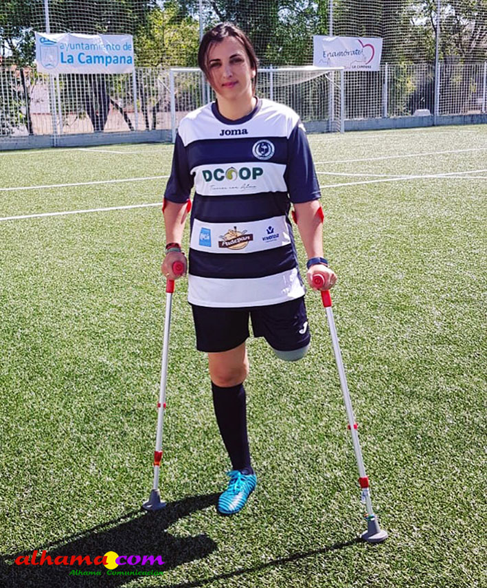 Mi vida después de la amputación me la tomé como una nueva oportunidad, una nueva vida. No le guardo rencor a la mujer que me atropelló, estoy agradecida de poder seguir viva, de poder estar con mis seres queridos y de llevar una vida normal. Hay cosas que echo de menos de mi vida anterior, como hacer senderismo, ANDADE subir las escaleras corriendo, hacer una carrera con mi hijo de vez en cuando o hacer zumba sin limitaciones (que lo he probado pero, oye, ¡no es lo mismo!). Ahora aprecio más las cosas simples de la vida, que son las más importantes y disfruto cada momento, o al menos lo intento. Me gusta llevar covers de colores porque quiero dar visibilidad al colectivo de personas amputadas, enseñar mi prótesis al mundo y que vean que existimos, que bailamos, que viajamos, que vamos de compras y que hacemos una vida normal. Doy gracias a Dios también por poder tener una buena prótesis que, aunque no es biónica, me permite realizar todas estas actividades. Y no me da la vida para agradecer a mi marido todo lo que hace por mí, por verme feliz. Siempre atento para cumplir mis sueños. El último, volver a jugar al fútbol, esta vez en muletas. Y es que no me pude resistir cuando vi el cartel de la creación del club de escribir porque yo quería probar. Gracias a Manuel Pacheco por la paciencia que ha tenido conmigo con mi indecisión y a todo el equipo por la buena acogida. El día 27 de abril en La Campana me lo pasé pipa y me sentí afortunada de poder compartir la jornada con gente tan grande como todos los miembros del equipo, y con la gente del pueblo de La Campana, que nos trataron de lujo.