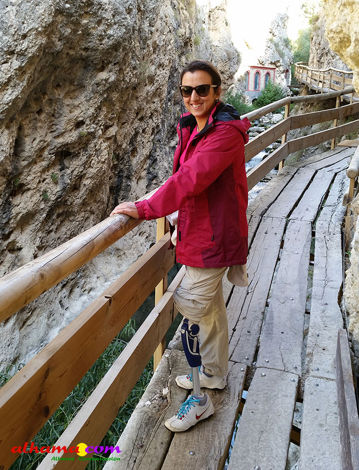 A final de enero, a los 3 meses de la amputación, me pusieron la prótesis y desde el primer momento que llegué a rehabilitación el fisio me dijo que “muletas fuera”, que me agarrara a él. Al día siguiente fui a comprarle el traje de comunión a mi hijo. Iba a rehabilitación a diario y poco a poco fui aguantando más horas seguidas la prótesis, dejando una muleta en casa, luego dos... y fui perdiendo un poco el miedo. En mayo me dieron el alta de rehabilitación y me compré un coche automático; ahí sí que empecé a tener independencia de nuevo. ¡Ya no necesitaba chófer, y además tenía dos piernas de nuevo! Vi a mi hijo hacer su Primera Comunión y fui al viaje fin de curso del AMPA del colegio y tomé mi primer baño en una piscina del Mini Hollywood con bastante público delante. Soy de la opinión de que si tú te aceptas y te quieres tal y como eres, los demás también lo harán, aunque la primera vez te miren raro (normal, yo también lo haría). Al año siguiente, en mayo, a los 18 meses y pico del accidente, me incorporé de nuevo a mi puesto de trabajo, y además con nuevas responsabilidades, pues también estaba a mi cargo la gestión de la Biblioteca Municipal. Desde entonces tengo menos tiempo libre, pero me sigo sintiendo realizada y útil, siento que aporto algo a la sociedad. Además me metí a estudiar un Ciclo Superior de agencia de viajes y gestión de eventos, me apunté a natación terapéutica (a la que voy dos veces en semana y donde el agua me da la libertad que en tierra firme no tengo), recibí clases de bachata por primera vez en mi vida, me hice Delegada de Andade en Granada (donde hago las veces de voluntaria para visitas a hospital/ rehabilitación, atiendo llamadas y mensajes de familiares de amputados o de personas que están recién amputadas, colaboro en charlas, eventos...), este año pasado me apunté también a un curso de corte y confección, y desde enero también hago yoga. Y en época de comuniones voy con el coro de la parroquia de mi pueblo a cantar a los pueblos de la comarca.
