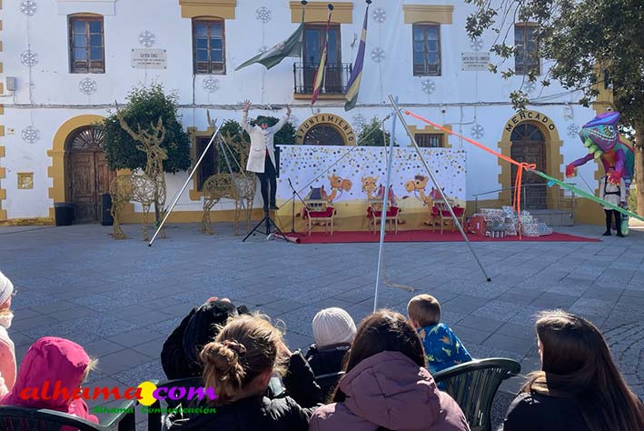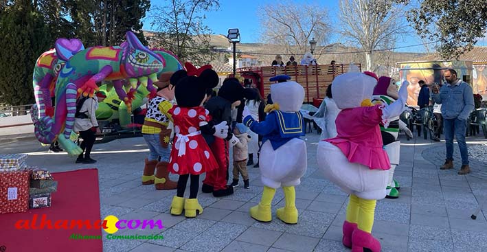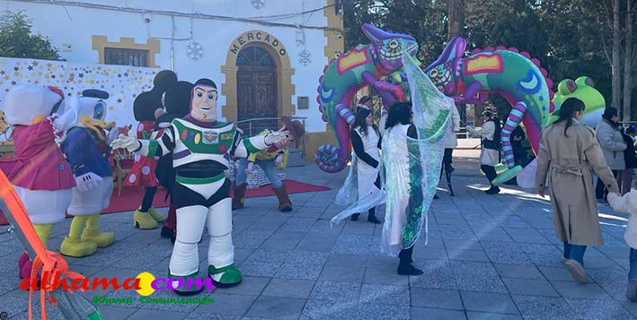 La jornada dio comienzo a las 10:00 horas con un desayuno popular de chocolate con churros, abierto a vecinos y visitantes. Una hora más tarde, a las 11:00, arrancó la esperada cabalgata, encabezada por la compañía de teatro Yera, que presentó su espectáculo “Los guardianes del arco iris”, llenando de color y fantasía las calles del municipio. Tras ellos, varios personajes animados de Disney acompañaron el desfile, precediendo a la carroza de Sus Majestades.