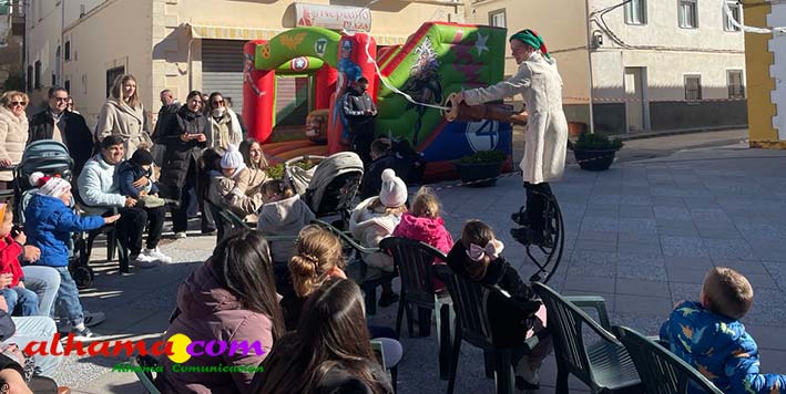 El recorrido concluyó en la plaza de la Constitución, donde los más pequeños pudieron disfrutar de un colchón hinchable y una mesa repleta de golosinas, mientras que los adultos degustaron roscón de Reyes y vino del terreno, en un ambiente festivo y familiar.