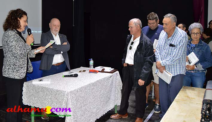 A continuación, la encargada de presentar al autor fue Miriam Reina Arrabal, que trazó un perfil amplio y afectuoso de Juan Bueno Pérez: profesor, geógrafo, historiador, abogado y escritor, nacido en 1952 en Ventas de Zafarraya, donde cursó su primera enseñanza. Recordó su amplia formación —Magisterio en Málaga, licenciaturas en Geografía, Historia y Derecho por la UNED—, así como su dilatada carrera docente y su faceta investigadora, con títulos ya conocidos como Los terremotos en Andalucía (1884-1885) o Las calles antiguas de Ventas de Zafarraya según planos de 1885. Subrayó también su papel como Cronista Oficial de la Villa desde 2003 y su “Premio Alhama” a la mejor labor de difusión otorgado por el Patronato de Estudios Alhameños.