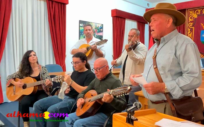 Jesús Ubiña, alcalde de Alhama, agradeció especialmente a Luis y Maribel y destacó que un salón de plenos lleno "se da pocas veces. Reconoció al Patronato como un pilar fundamental de la cultura de Alhama y anunció que van a vincularlo mucho más con el Ayuntamiento y la Consejería de Cultura. Recordó que su madre de 96 años le cuenta que la vinculación con los verdiales viene del intercambio de trabajadores del campo que venían de la costa en verano.