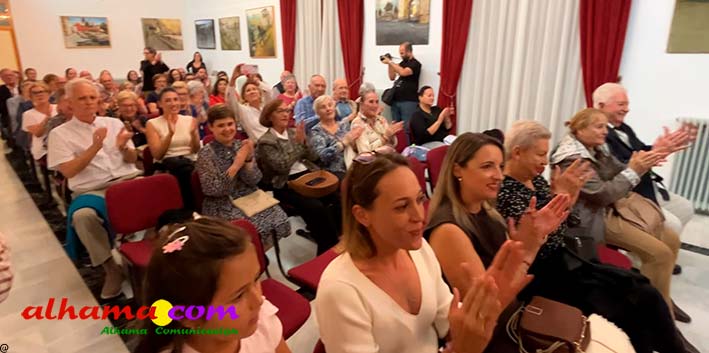 Maribel Hinojosa Arias tomó la palabra para explicar la estructura del libro, pero antes quiso hablar del porqué y el cómo. "Anoche mismo mi padre y yo estábamos en casa comentando, y yo le decía que sentía una responsabilidad, una cuádruple responsabilidad en cuanto al fandango de Alhama". La primera, porque aunque sea en parte "panciverde", su corazón es alhameño. Se crió allí con muchos de los asistentes, que la vieron más bajilla de lo que es ahora, y su corazón pertenece a Alhama.