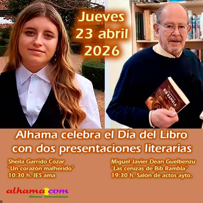 Este jueves 23 de abril, Alhama vivirá una jornada literaria especial, con dos presentaciones de libros que recorrerán distintos géneros, pero que compartirán el mismo objetivo: celebrar el poder de la escritura y la literatura. A las 10:30 de la mañana, en el IES-Alhama, la escritora Sheila Garrido Cózar presentará su primer libro, Un corazón malherido. A las 19:30, será el turno de Miguel Javier Dean Guelbenzu, quien, acompañado y presentado por Antonio Arenas, presentará su novela histórica Las cenizas de Bib Rambla, una obra profundamente vinculada a la historia de Granada.