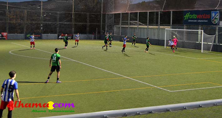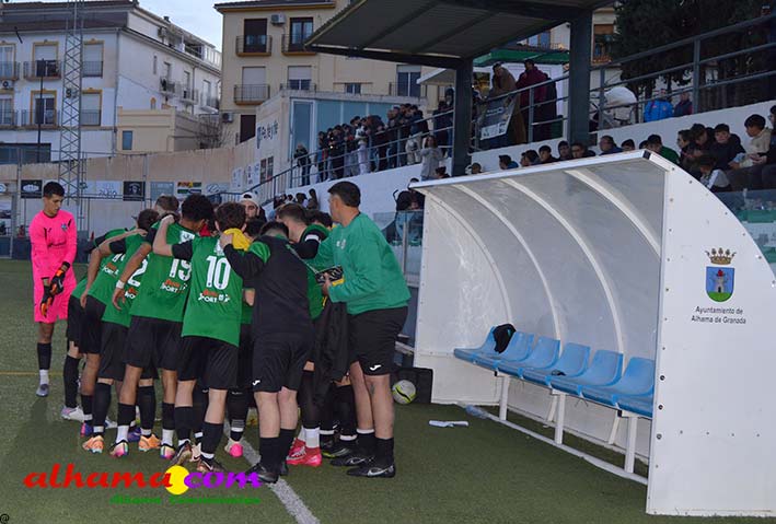 El equipo infantil de la UD Alhameña sigue con su buena racha y se llevó tres puntos importantísimos. El equipo alhameño se adelantó en el minuto 9 con gol de Hugo Olmos, el equipo seguiría con su filosofía de juego con posesiones largas y sin rifar el balón. En el minuto 14 en una jugada de mala suerte el equipo de Moraleda empataría. Al borde del descanso Javier Fernández anotaría el 2 a 1 para irse al descanso.