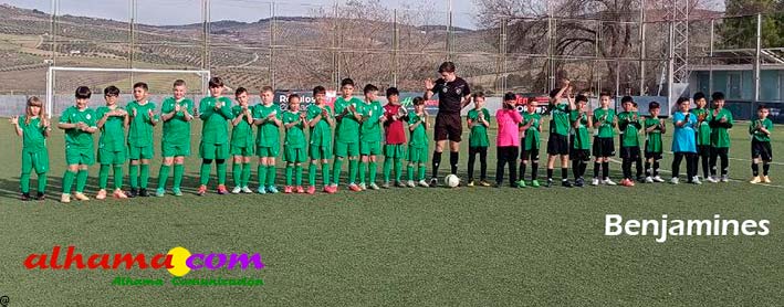 Una primera parte impresionante que hicieron los peques de la UD Alhameña, que se adelantaron en el minuto 3 de partido pero que en el minuto 6 le empataron en una jugada con fortuna del equipo visitante que golpeó en el portero local dio en el palo y entró. A partir de ese momento el equipo alhameño desarrolló un juego hasta el momento no visto en la temporada; sacando el balón desde atrás y sin precipitación en la posesión de balón. Al descanso por primera vez en la temporada el equipo alhameño se marchó ganando 3 a 2.