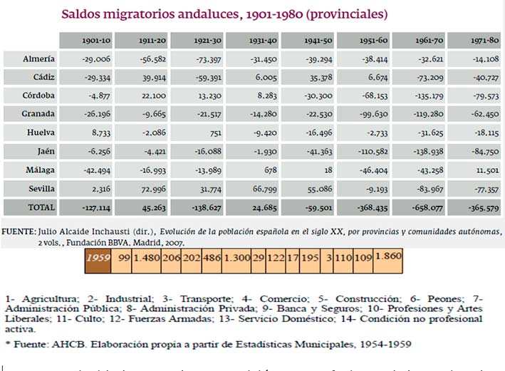 Y, como curiosidad, esta es la composición por profesiones de los emigrados a Barcelona en la segunda mitad de los años 50 del siglo pasado:
