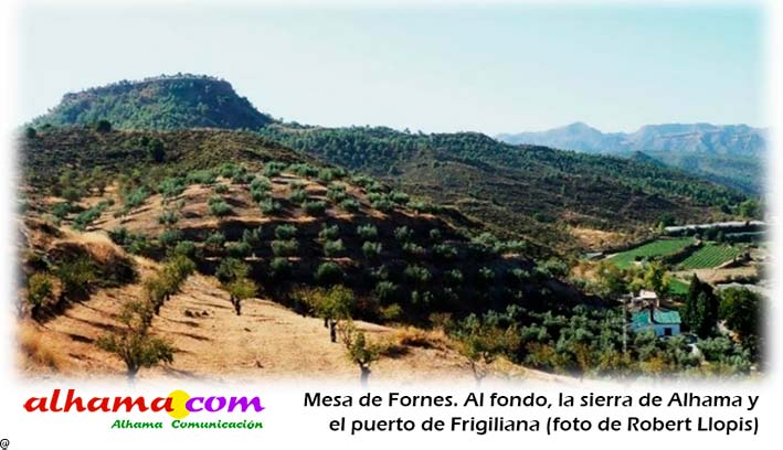 2. Fortificación de la Mesa de Fornes. Por el Puerto de Frigiliana, se abre la ruta que cruza las sierras de Almijara y Tejeda, siguiendo los cauces de los ríos el Cebollón y río Grande, afluentes del Cacín, que confluyen en la pequeña depresión que hoy está ocupada por las aguas del Pantano de los Bermejales. Aquí, un poco más arriba, se levanta la Mesa de Fornes, como atalaya natural que vigila la conexión de los afluentes con la cuenca del río Cacín.