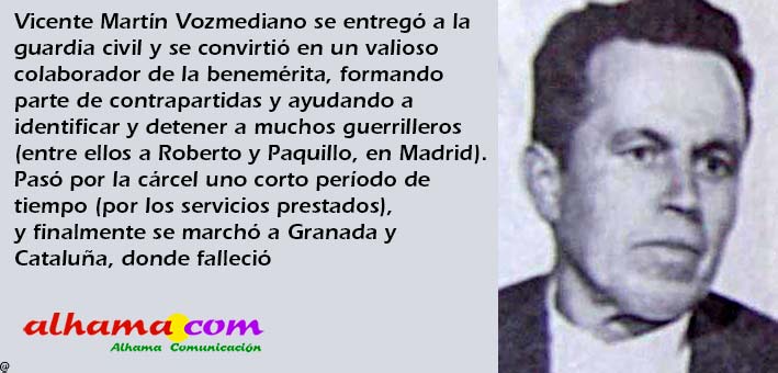 Luego él, como le hizo mucho servicio a la guardia civil, pues estuvo un poco tiempo en la cárcel y lo echaron; luego salió. Cuando salió y fue a Frigiliana, pues la madre de un muchacho que había matado él pues fue al cuartel y les dijo que se lo llevaran, que allí no estuviera. Claro, en la guardia civil le dijeron que él había cumplido su condena y que ellos no lo podían echar; pero se lo aconsejarían, porque él se fue a Granada. Creo que lo colocaron en la Cartuja y allí ya estaba él con su mujer y con sus hijos, que todavía vive. Tengo entendido que viene de vez en cuando a Frigiliana (¡también el valor de venir a Frigiliana! En Frigiliana hizo mucho daño). Mató a ese muchacho porque por lo visto les había llevado un saco con cosas para la gente de la sierra, lo dejaron escondido entre unas matas y este muchacho fue a por leña, o por carbón, o esparto, o algo…; fue a la sierra. Estaba en la mili y había venido con permiso, y entonces fue el muchacho y vio aquel saco, y lo abrió y cogió unas alpargatas y se las puso. Y Vicente, que estaba enfrente y lo estaba viendo con los gemelos, pues lo cogieron e hicieron una herejía. Lo colgaron, le cortaron sus partes, le saltaron los ojos y luego lo ahorcaron. Eso hicieron con un muchacho pues con veintiuno… veinte o veintiún años tendría; había venido con permiso a su casa, que estaba en la mili. Y eso lo hizo ya Vicente, que se quedó ya en la sierra y él se hizo el, bueno… el encargado de los que quedaban; el jefe, incluso (ya he dicho antes) que mató a su propio hermano, porque llevó a los civiles adonde estaba el hermano. En fin, luego después mató al padre el muchacho, y todavía vive, viene de vez en cuando; tiene el valor de venir de vez en cuando al pueblo.