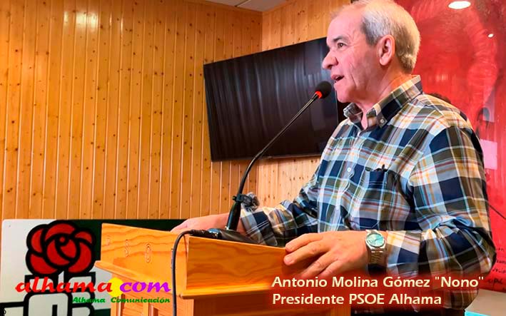 El presidente del PSOE de Alhama y exalcalde de la localidad, Antonio Molina Gómez, aportó la perspectiva histórica de quien ha vivido la evolución del partido durante casi cinco décadas. Con 70 años y una memoria privilegiada, Nono Molina transportó a los asistentes a aquellos años fundacionales del PSOE en Alhama.