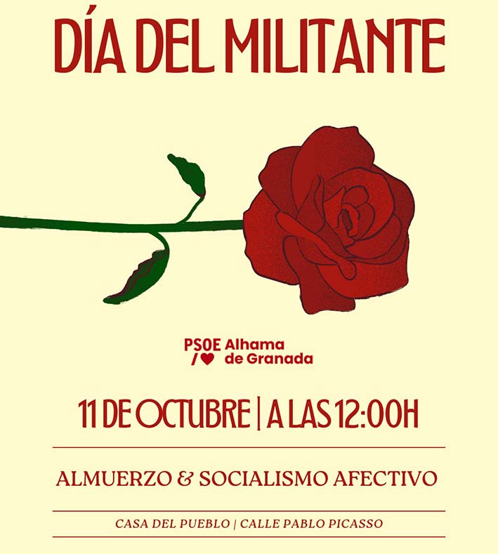 En la víspera del Día de la Hispanidad, y también como celebración de la misma, la Casa del Pueblo de Alhama se llenó de militantes, simpatizantes y familiares para celebrar el Día del Militante, un acto que el PSOE alhameño realiza periódicamente para honrar la memoria de aquellos compañeros que ya no están pero que dedicaron su vida a defender los ideales socialistas de justicia, igualdad y solidaridad.