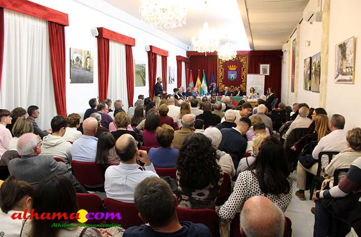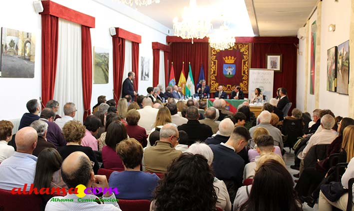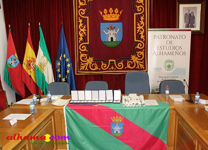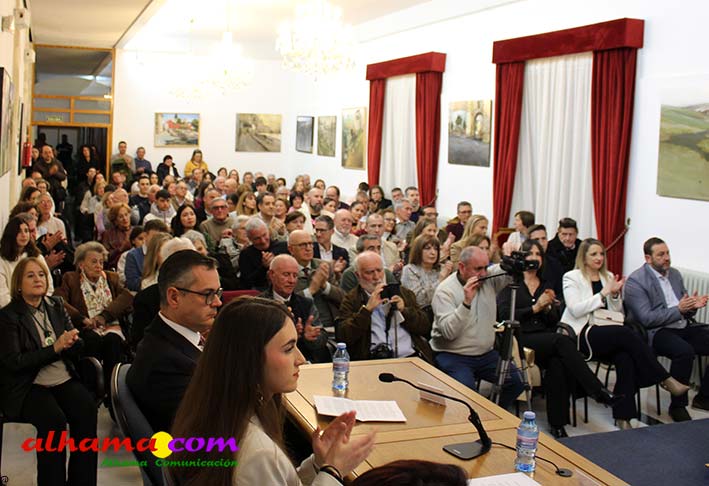 Una vez más se puso de manifiesto que Alhama necesita un espacio cultural con más capacidad pues el salón de actos del consistorio volvió a quedarse pequeño y fueron muchos los asistentes que tuvieron que seguir la gala de entrega de los premios organizada por el Patronato de Estudios Alhameños con la colaboración del Ayuntamiento, o bien de pie o desde el exterior. La historia volvió a repetirse en la noche del viernes con motivo de la 34ª edición de estos edición que desde sus inicios vienen reconociendo al alhameño/a del año, a la mejor labor en favor de Alhama para un residente y para un no residente, mejor labor de difusión y mejor expediente académico, a los que en ediciones posteriores se han sumando el premio comarcal del año a partir de 2007 y el oriundo de Alhama, a partir de 2013. Todos recibieron las felicitaciones del alcalde de Alhama, Jesús Ubiña, presidente actual del Patronato, Raúl Gálvez y presidente de honor, Andrés García Maldonado, quien manifestó con satisfacción, como más de tres décadas después todos lo años hay personas merecedoras de este galardón. También de cómo esta ciudad celebra el 28 de febrero su Día Histórico, con la lectura de 'La proclama de Alhama' en favor de la concordia «entre los pueblos y las culturas». Unos premios muy democráticos que reconocen la labor de gente sencilla, junto a catedráticos de Universidad y de los más diversos sectores.