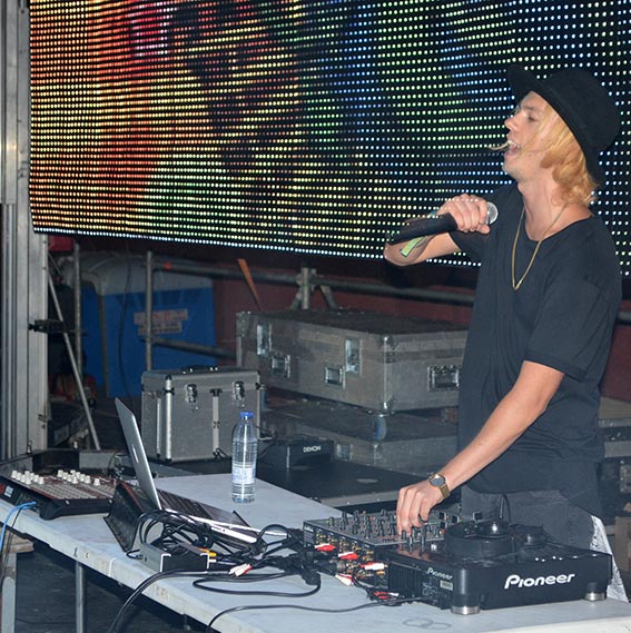 Lucius Blue a los mandos de la música pregrabada sorprendió al respetable con su frescura y su espontaneidad con un amplio repertorio de música electrónica latina.