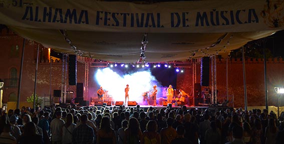 El Paseo del Cisne volvió a ser el escenario el pasado 6 de agosto a las once de la noche, de la segunda jornada de la cincuenta y una edición del Alhama Festival de Música que se inició con el concurso de artistas noveles, con una categoría absoluta, frente a las dos categorías que venían ofreciendo; pop rock y flamenco fusión.