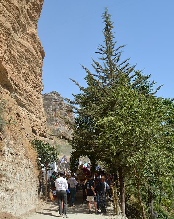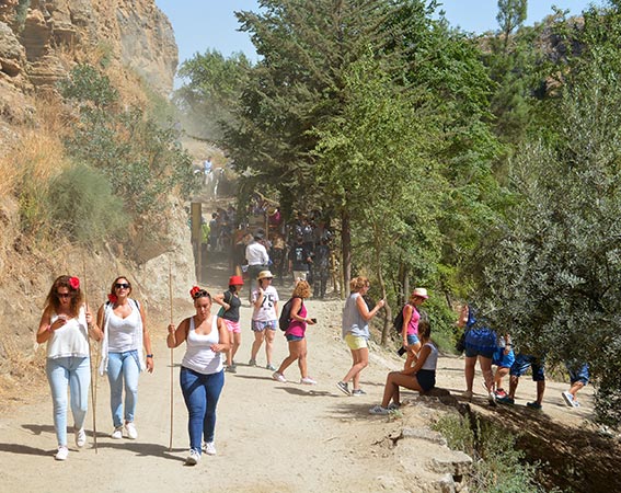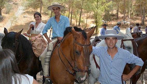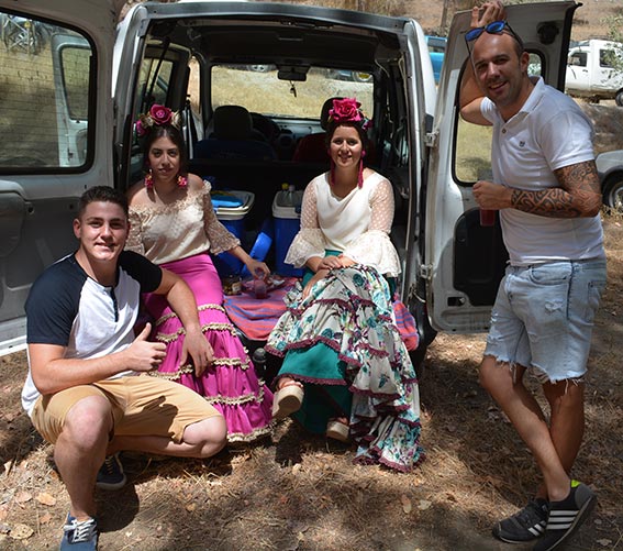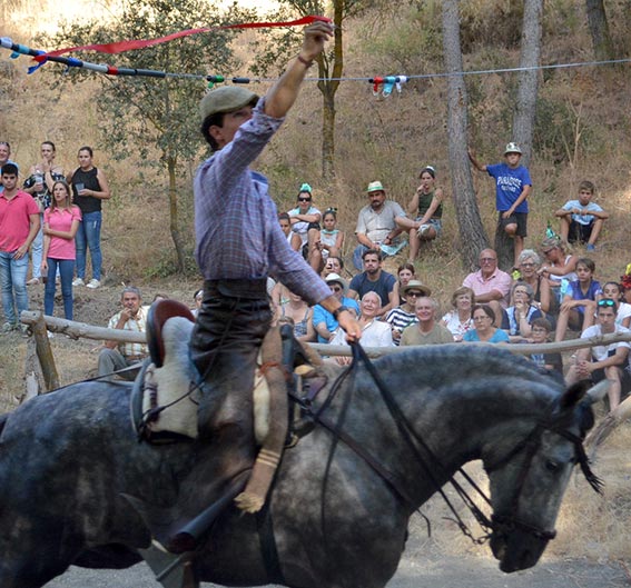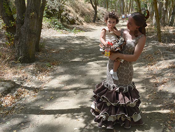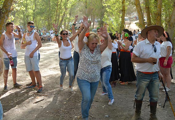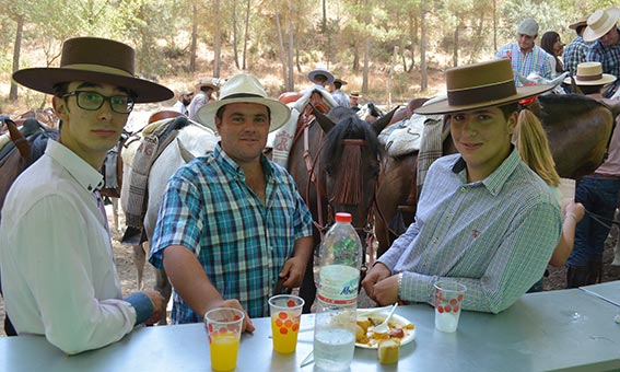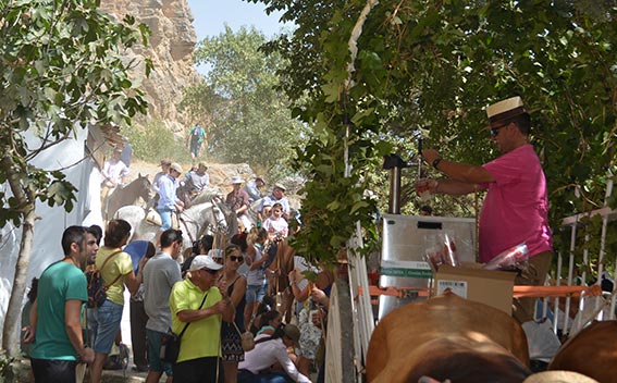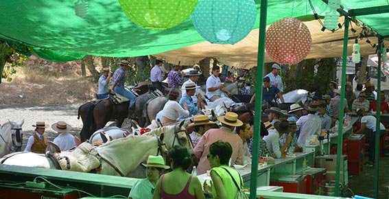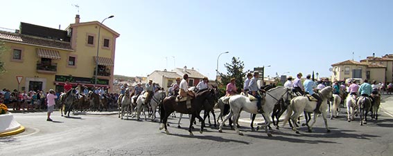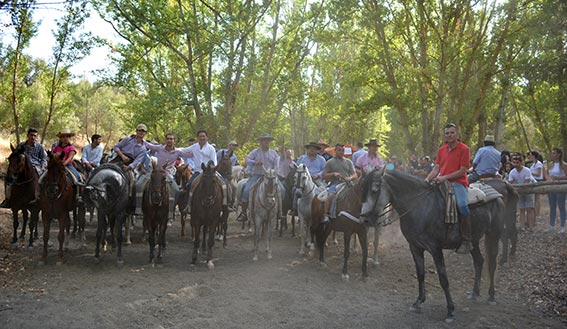 En este punto se divide la romería, lo vehículos por la carretera y los caballos, y romeros de a pie, por el camino de Los Ángeles. Seguimos a los jinetes y caminantes