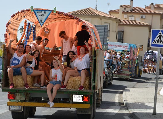 La Romería del Vino 2017 se inició con una caída en el índice de participación de las carrozas, ya que ha sido el menor de cuantos recordamos, no ya sólo en el número, sino también en los componentes de cada una de ellas, pero sin embargo ha habido un incremento en cuanto a la participación de jinetes y caballistas se refiere, se nota que la asociación caballista alhameña “La elevada” se lo trabaja.