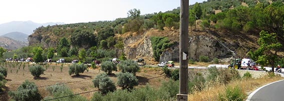 Los vehículos hacia 'El Motor' por la carretera de Játar, y ya todos en el recinto