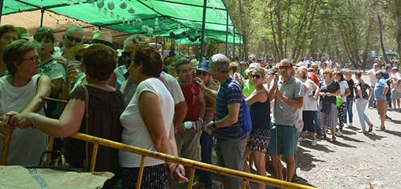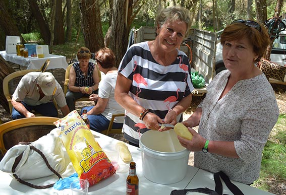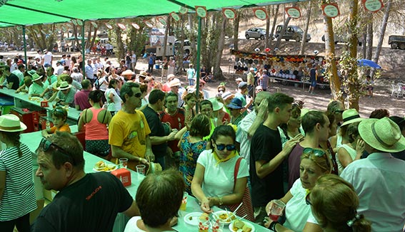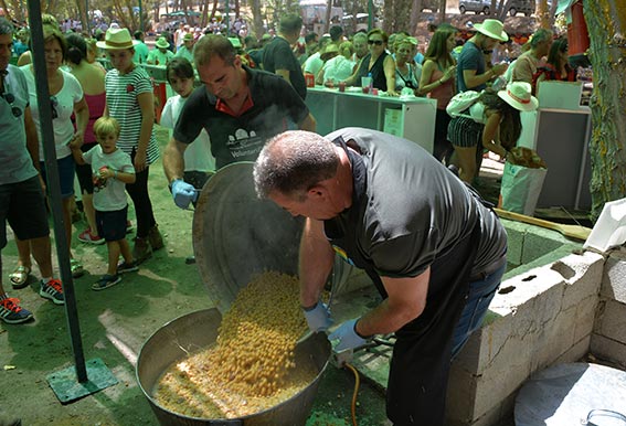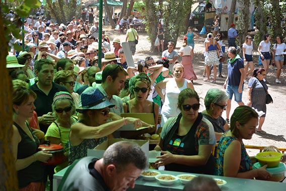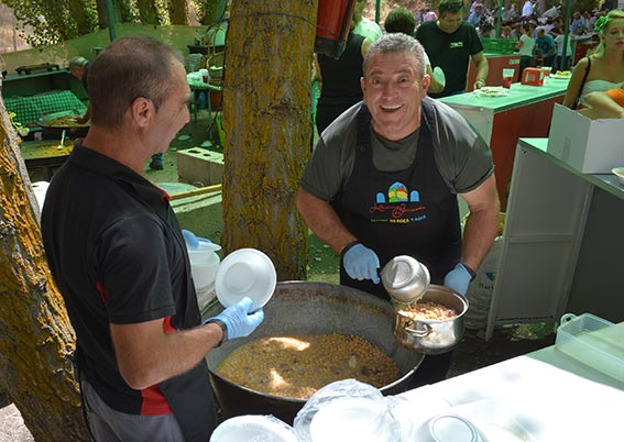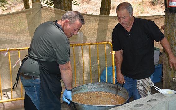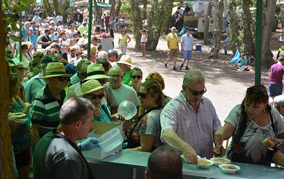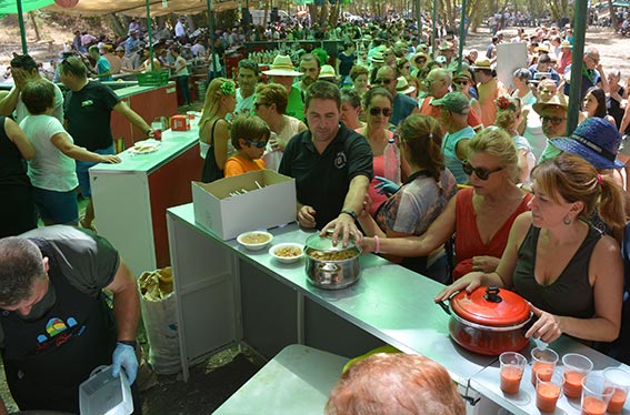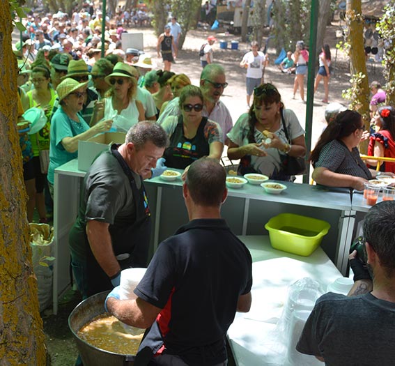 A la olla se le unió el reparto de cien litros de gazpacho y el de varias arrobas de vino del terreno, a elegir por el consumidor, lo que supuso un buen y rico almuerzo para quienes quisieron degustarlo, que fueron casi todos, y para los que miembros del hogar del pasionista estuvieron allí ayudando, así como otros voluntarios y personal municipal.
