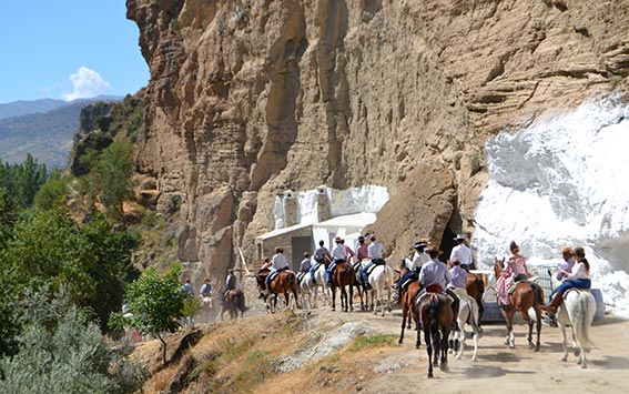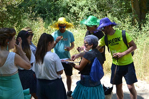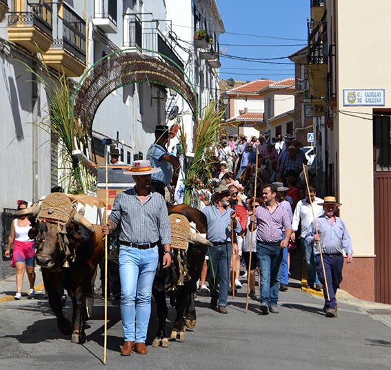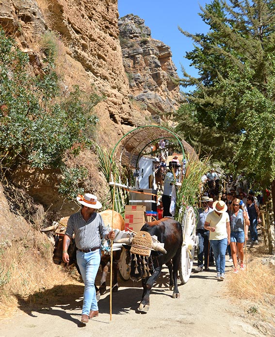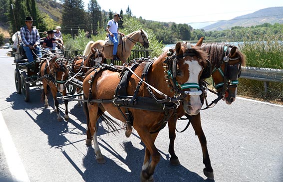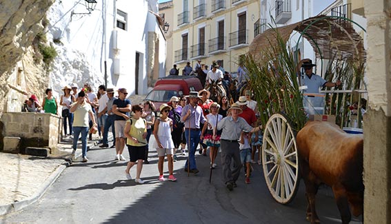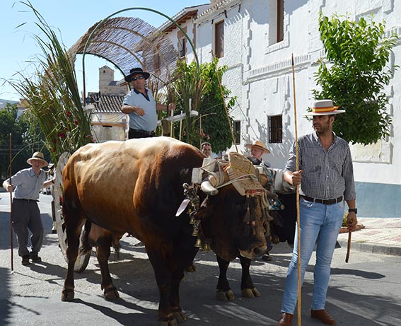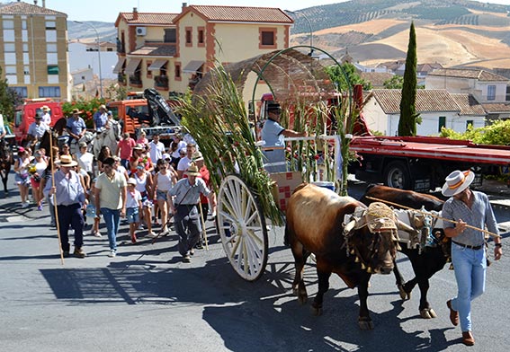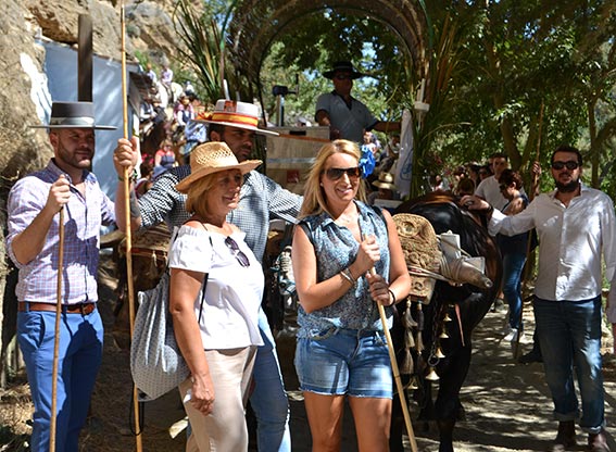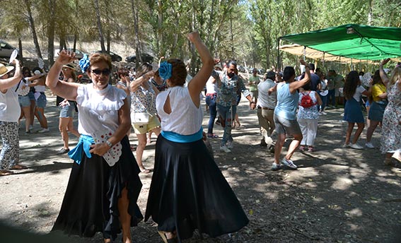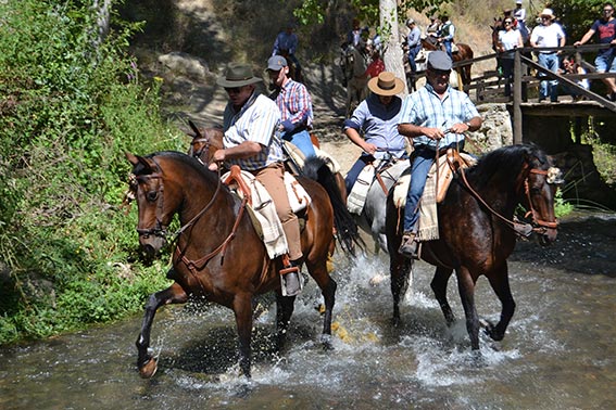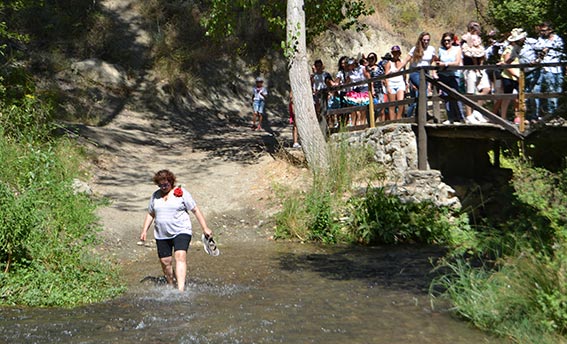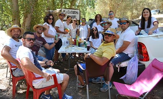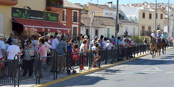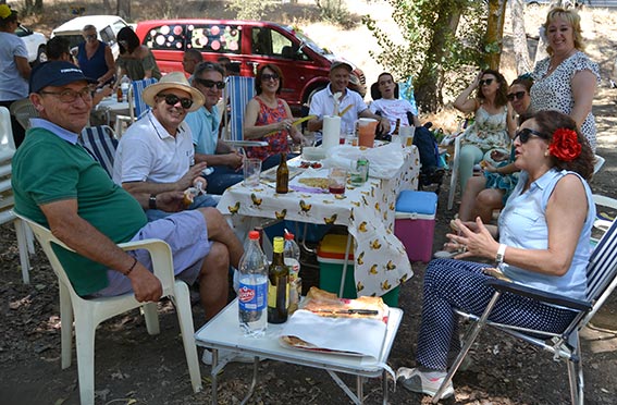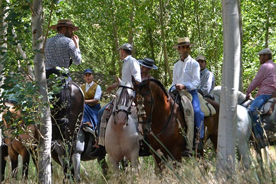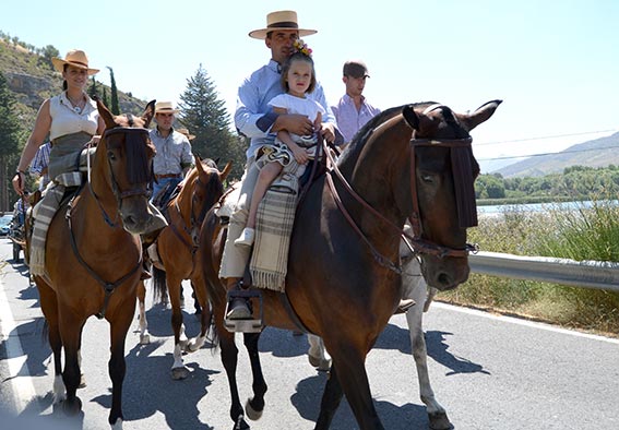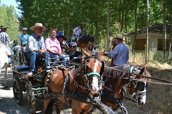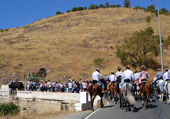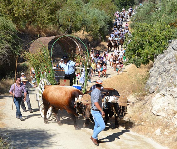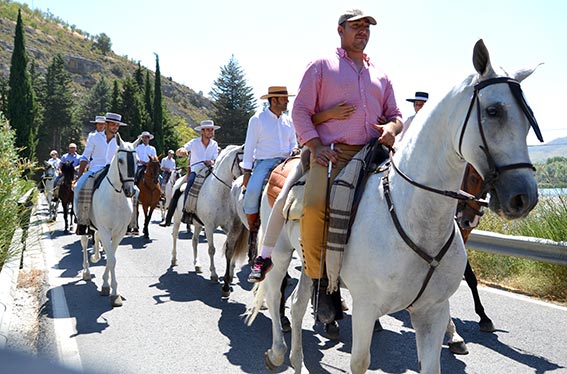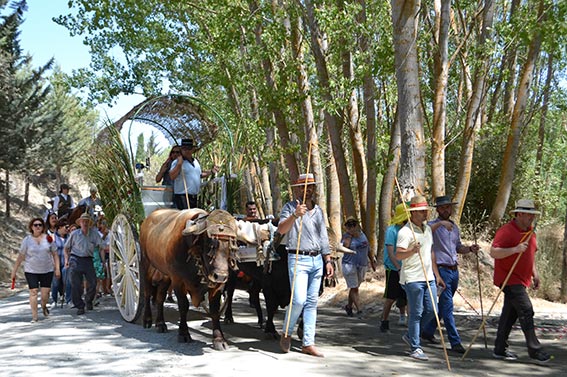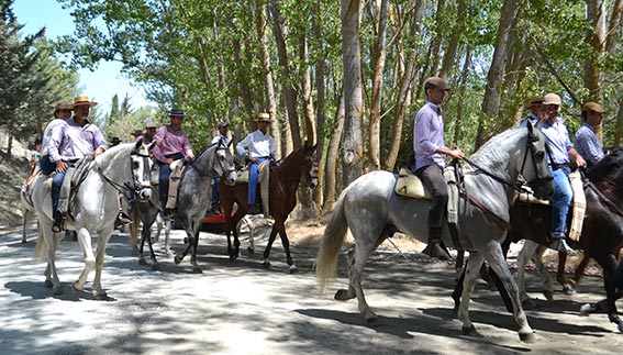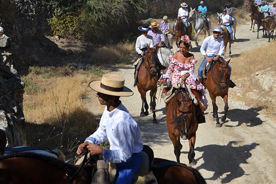 Tampoco se ha mantenido el número de caballistas, y eso que a los participantes locales de la Peña Caballista La Elevada se sumaron compañeros venidos de otros puntos de Granada y de la vecina Málaga. De nuevo fueron estos caballistas los que dieron la nota pintoresca al recorrer el Camino de los Ángeles, que, precedidos por una yunta de bueyes, aunque sin la flauta y el tamboril que tanto alegraba el recorrido. Agradecer a esta Peña Caballista que en la parada del “El chiringuito” ofreciera cerveza y tapa para refrescar a los acompañantes, algunos de ellos alhameños emigrantes que pasan unos días de vacaciones en su pueblo natal y varios sevillanos que aprovechan las bondades de las aguas termales del Balneario.