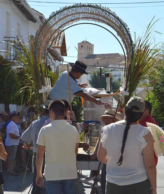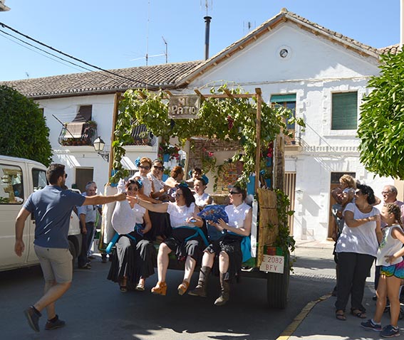 Treinta y seis años llevamos los alhameños celebrando su Romería del Vino. Esta actividad que se inició como un acto más de la feria de septiembre se iniciaba en torno a las nueve y media de la mañana con la concentración de carrozas en la Plaza del Rey, donde el público comentaba el descenso del número de participantes que en algunas ediciones ha superado las 30 carrozas y en esta sólo había ocho y la mayoría no hubiera cumplido los requisitos exigidos antaño, tales como una ornamentación cuidada y al menos 15 integrantes.
