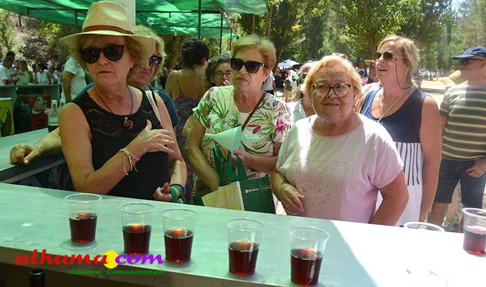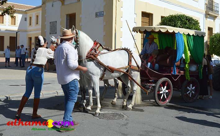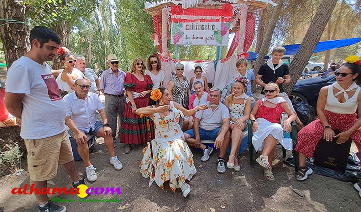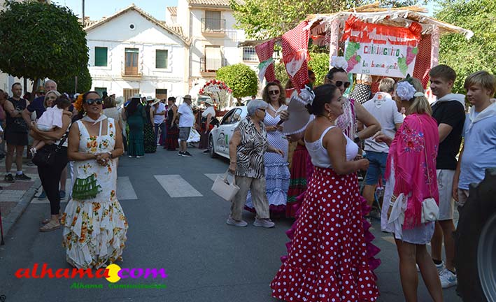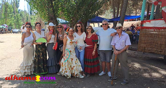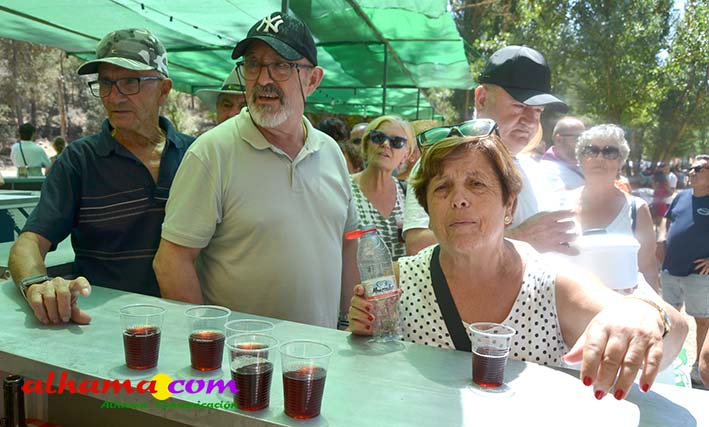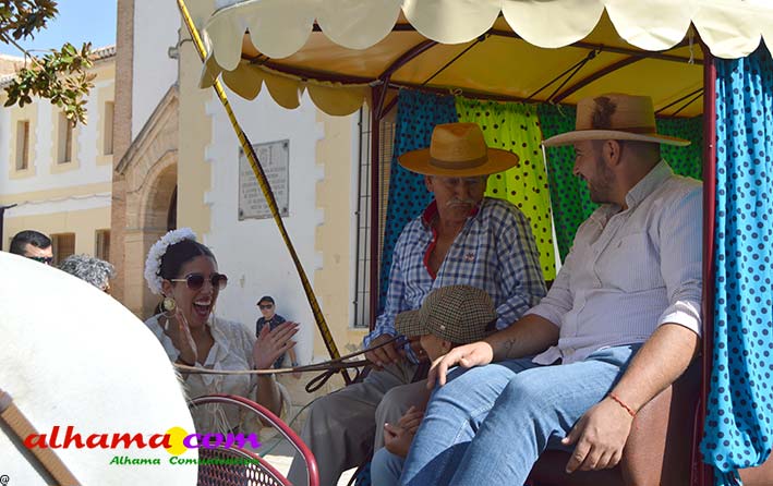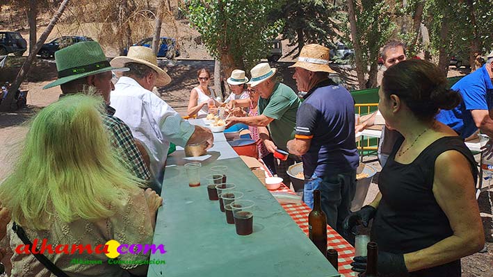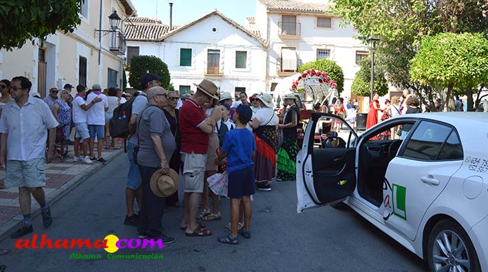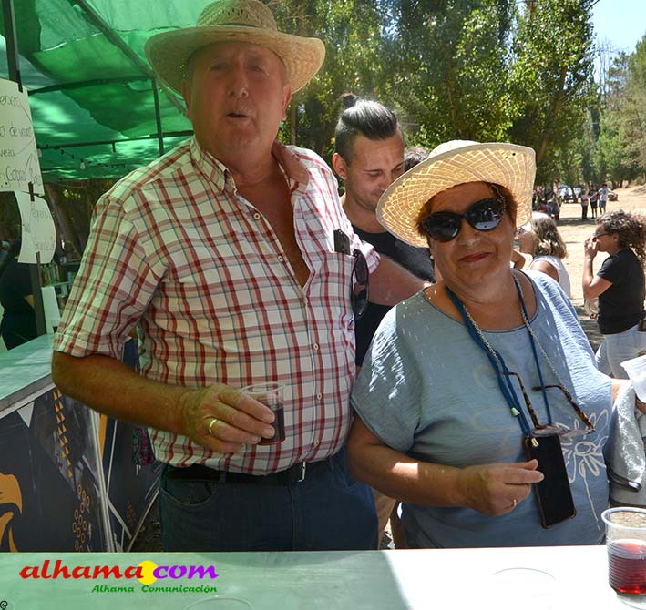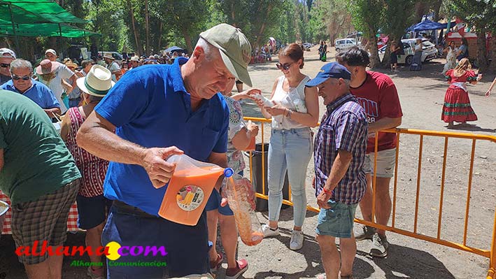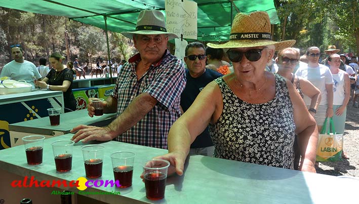 Como buenos conocedores Manolo y Toñi nos cuentan que el retroceso de las fiesta se puede deber a varios motivos, como el que los alhameños prefieran irse a sus cortijos o la playa y a la poca implicación de los jóvenes. A ello añaden que también la necesidad de hacer más difusión a través de cartelería, en los pueblos de la comarca. También Otilia y Concha, del Centro de Participación Activa, muy atareadas con el reparto del vino y el gazpacho, y ayudadas por Reyes, son de la misma opinión, e incluso que habría que admitir que los jóvenes acudiesen con su música. Muy cerca, mientras esperan recibir su ración, Antonia, una alhameña que reside en Vitoria y que no ha faltado a esta cita anual, comenta que le gusta volver a su pueblo «para no perder las raices» y se lamenta de que cada vez haya menos gente joven que no se implica y otros que prefieren irse va a los cortijos. Pepi, de Málaga, reconoce que le gusta «el pucherito» y que esta muy a gusto en Alhama pues «durante el día hace calor pero por la noche refresca y eso se agradece». Otra vitoriana, Rocío, que regresa siempre en verano, recomienda buscar fórmulas para que la gente de Alhama participe más y su hija Iara, manifiesta «que la romería es muy divertida» y que le encanta acompañar a los caballos por la ruta de los Tajos. Juan Antonio Ocón, en nombre de sus compañeros de la banda de musica integrantes de la carroza 'Viva la orquesta de mi pueblo' indica que han querido poner su granito de arena, y Ana, la mujer de Antonio El Churrero, en nombre de la carroza Las Flamencas explica que para la montarla han utilizado un carro antiguo restaurado que han decorado «con mucha ilusión con gente venida de Barcelon y Melilla, para que esto no se pierda».