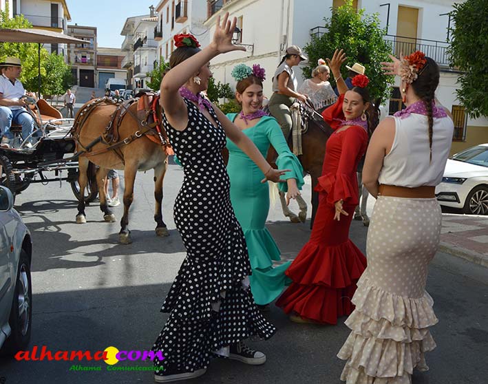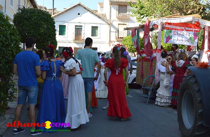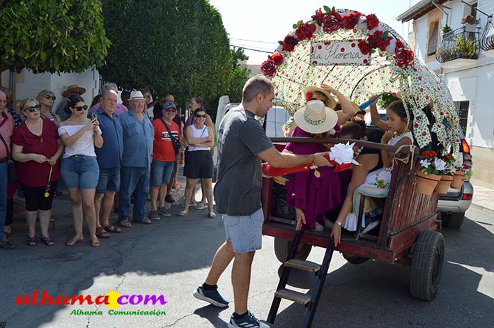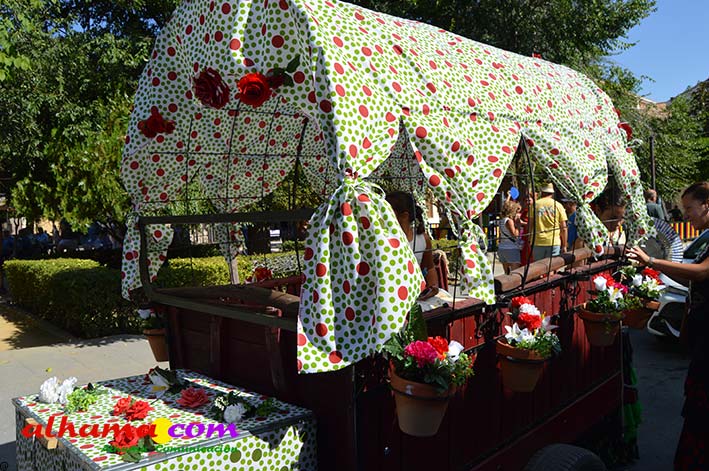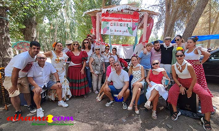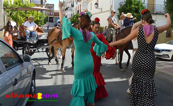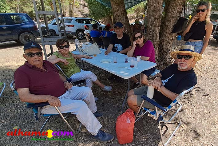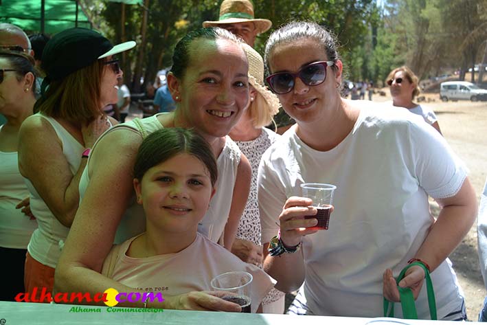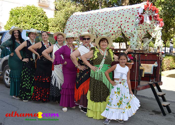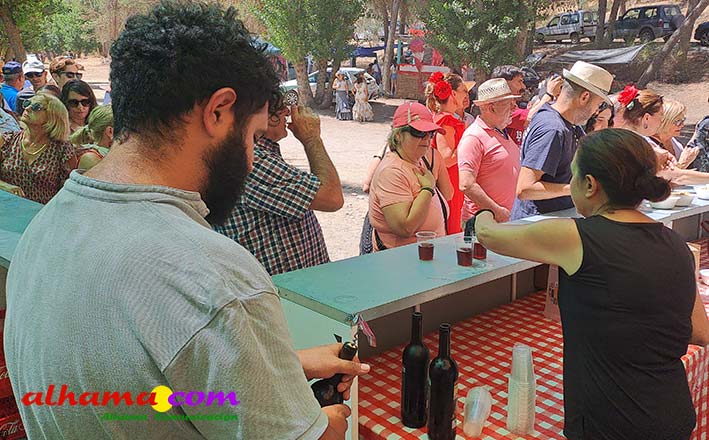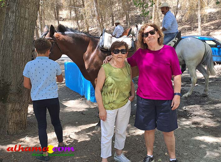 Como buenos conocedores Manolo y Toñi nos cuentan que el retroceso de las fiesta se puede deber a varios motivos, como el que los alhameños prefieran irse a sus cortijos o la playa y a la poca implicación de los jóvenes. A ello añaden que también la necesidad de hacer más difusión a través de cartelería, en los pueblos de la comarca. También Otilia y Concha, del Centro de Participación Activa, muy atareadas con el reparto del vino y el gazpacho, y ayudadas por Reyes, son de la misma opinión, e incluso que habría que admitir que los jóvenes acudiesen con su música. Muy cerca, mientras esperan recibir su ración, Antonia, una alhameña que reside en Vitoria y que no ha faltado a esta cita anual, comenta que le gusta volver a su pueblo «para no perder las raices» y se lamenta de que cada vez haya menos gente joven que no se implica y otros que prefieren irse va a los cortijos. Pepi, de Málaga, reconoce que le gusta «el pucherito» y que esta muy a gusto en Alhama pues «durante el día hace calor pero por la noche refresca y eso se agradece». Otra vitoriana, Rocío, que regresa siempre en verano, recomienda buscar fórmulas para que la gente de Alhama participe más y su hija Iara, manifiesta «que la romería es muy divertida» y que le encanta acompañar a los caballos por la ruta de los Tajos. Juan Antonio Ocón, en nombre de sus compañeros de la banda de musica integrantes de la carroza 'Viva la orquesta de mi pueblo' indica que han querido poner su granito de arena, y Ana, la mujer de Antonio El Churrero, en nombre de la carroza Las Flamencas explica que para la montarla han utilizado un carro antiguo restaurado que han decorado «con mucha ilusión con gente venida de Barcelon y Melilla, para que esto no se pierda».