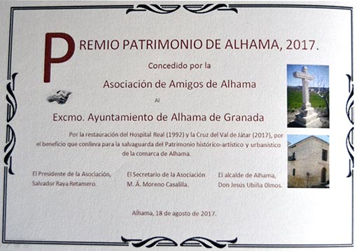 En la tarde del viernes, 18 de agosto, con motivo de la conmemoración del Día de la Independencia y la Libertad, como una muestra del interés de todos por el desarrollo económico y cultural de la comarca alhameña, tendrá lugar en el salón de actos del ayuntamiento de Alhama, la entrega de Premios Patrimonio de Alhama 2017 que otorga la Asociación Cultural de Amigos de Alhama, al frente de la cual está el historiador, Salvador Raya (20,30 h). A continuación, se presentará el número 2 de la revista científica y cultural, 'Çibdad', de casi 400 páginas en las que se ha incluyen una veintena de artículos de especialistas en distintos campos: medicina, arte, historia, literatura, filosofía, teología, arqueología, pintura, cantería y escultura.
