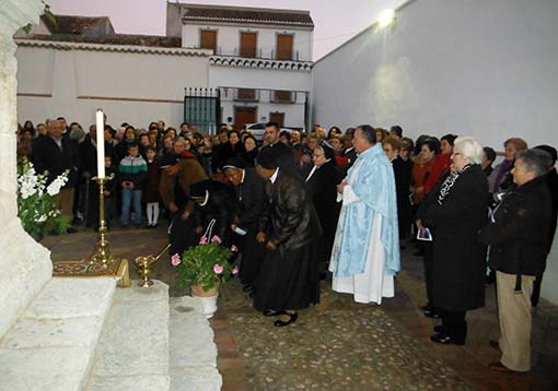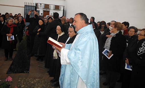 Los actos comenzaron a las cinco de la tarde, con una solemne misa en honor de la Inmaculada Concepción. Fueron numerosas las personas de Alhama, y de otros lugares de Andalucía como Antequera o Vélez Málaga, las que no quisieron perderse esta celebración y la recuperación de esta imagen del siglo XVIII, presentando la Iglesia del convento de San Diego un lleno absoluto, los actos continuaron con la bendición de la imagen, la intervención de sor Clara, así como un canto y baile de unas jóvenes hermanas clarisas africanas venidas de otro convento, y que en su idioma y en sus costumbres honraron la imagen de la Inmaculada recién recuperada para el patrimonio de Alhama.