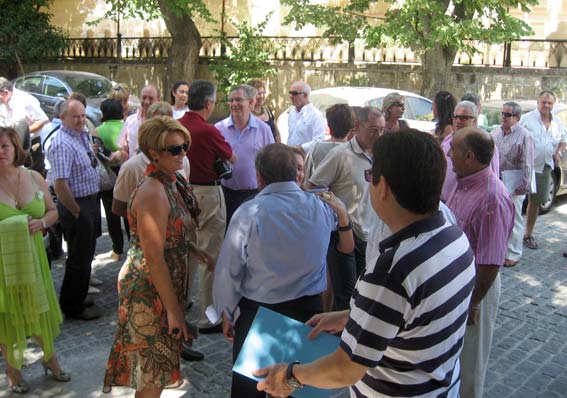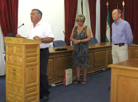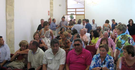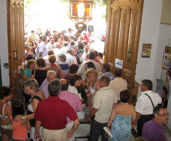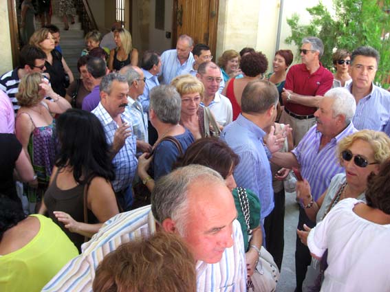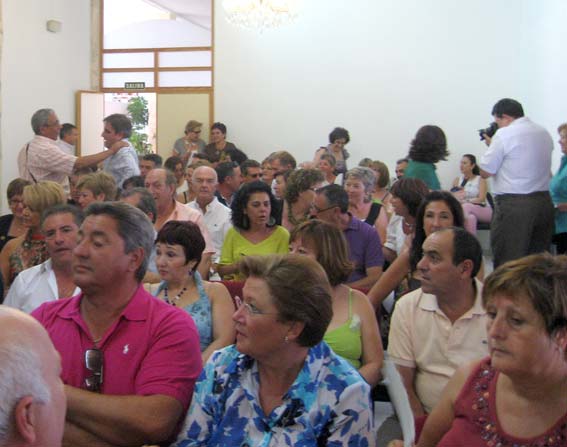 Así pues, llegado el 14 de agosto, algo más de cien personas, entre protagonistas y consortes, se daban cita en la puerta del ayuntamiento alhameño, alguno de ellos entraría en él por primera vez, y tras los reconocimientos y presentaciones entre ellos, el tiempo se ha encargado de cambiar muchos rasgos, el alcalde, Francisco Escobedo, les dio personalmente la bienvenida, y en sus palabras manifestó estar contento por el acontecimiento y que los ‘jameños’, estén donde estén siempre tendrán las puertas de la casa consistorial abiertas para todos y cada uno de ellos, haciéndoles el ofrecimiento para cuando lo necesitasen. Este recibimiento fue precedido por las palabras del organizador del mismo, Salvador Vargas, quien agradeció la presencia de los asistentes y les informó de cómo se había organizado la jornada.