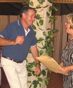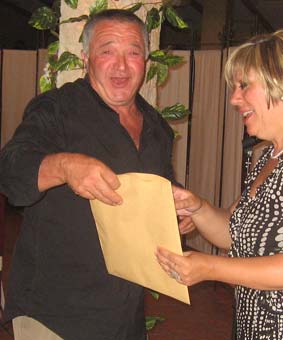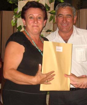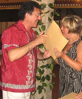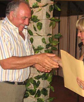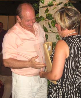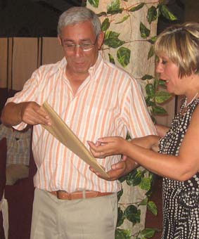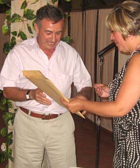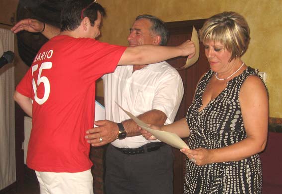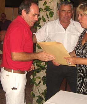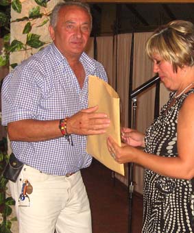 Mario Soria agradeció en nombre de los presentes la organización de Salva y Juani, y fue quien les dió a ellos su recuerdo. Mario se preparó una camiseta para la ocasión