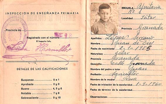 Yo viví toda mi infancia, y por lo tanto la escolaridad en Játar. A finales del 1968 cuando me faltaba ya poco para cumplir los 14 me llevaron para Barcelona donde vivo desde entonces, pero siempre me he sentido orgulloso de decir que yo nací en Alhama de Granada.