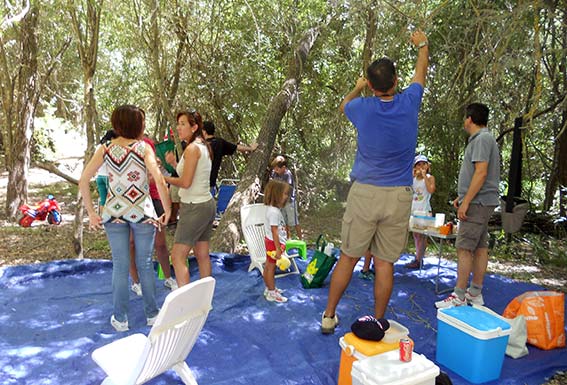 Una vez allí descargamos los tableros y colocamos las sillas. Llevamos un tablero que sirvió de mesa de ping-pong, (como antiguamente) pelotas y palas para los más peques, también un kayak con el que disfrutaron los niños más grandecitos.