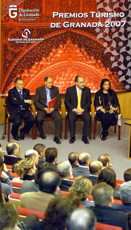 28/03/2007.- En un acto celebrado el martes 27 de febrero, la Diputación Provincial de Granada entregó los premios Turismo de Granada, correspondientes al año 2007. Como ya anunciábamos en días anteriores, y puede verse aquí, el establecimiento alhameño El Ventorro fue distinguido con uno de ellos, y fue recogido por su propietario y gestor, Juan Miranda, que recordó agradecido los principios empresariales de sus padres y a todas las empresas de la Comarca que le suministran. También recibió este galardón alguien que, sin ser de Alhama, está muy vinculada a nosotros, y en donde tienes buenos amigos, la bailaora Eva la Yerbabuena, la cual casi no pudo hablar, solo para reconocer que tenia los mejores amigos del mundo y echarse a llorar como una cria, y eso que está acostumbrada a los premios...