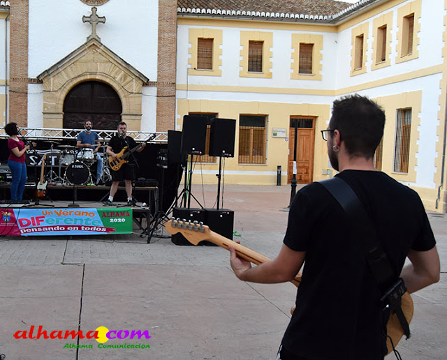 Así transcurren los fines de semana musicales en Alhama, dentro de un Verano Diferente, en el que diversos grupos y cantantes actúan en las ya tres definidas zonas de Alhama para esta cuestión, como lo son el centro, o Placeta, la Plaza Duque de Mandas, y la zona de la Joya o Urbanización, y, en esta ocasión, el jueves, viernes y sábado.