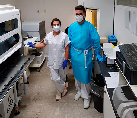 Los dos profesionales sanitarios alhameños se encargarán durante el sábado 8 y el domingo 9 de agosto de realizar los análisis de todas las pruebas de PCRs que se efectúen en el Campo de Gibraltar. Se da la circunstancia de que Maxi ya coincidió con Inés este mes de diciembre y al saber esta que en los turnos de sustitución había sido destinado a su hospital lo reclamó para que trabajara con ella en el nuevo laboratorio, que lleva funcionado desde el 25 de marzo, según nos informa la doctora Ruiz Molina: “Este laboratorio se montó en una semana y empezó a funcionar el día 25 de marzo. Inicialmente teníamos que mandar las muestras a distintos laboratorios de referencia, pero el último de ellos colapsó y eso traía como consecuencia el desbordamiento de nuestro Hospital. La Dirección Médica se puso en contacto conmigo y nos lanzó el reto de hacer las PCRs aquí en nuestro Hospital. Lo consensué y estudié con mi compañera, la Dra Becerril, también de Granada, y nos pusimos manos a la obra y en 10 días estábamos lanzando resultados.”