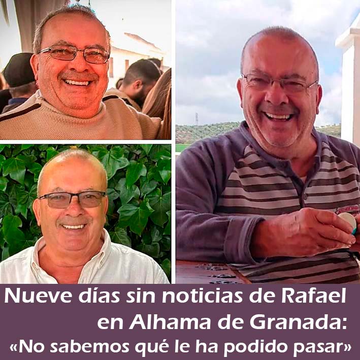 Rafael hizo el pasado miércoles, 18 de febrero, lo mismo que cualquier otro día. Fue al peluquero, pasó por algún negocio de Alhama de Granada -municipio en el que reside- y realizó gestiones varias, nada inusual. Por la noche, un familiar se cruzó con él y le comentó que ya volvía a casa. Sin embargo, nunca llegó. Ese allegado es la última persona que lo vio. La mujer de Rafael se fue a dormir, pensando que su marido se habría entretenido, pero ya volvería. Cuando despertó, la cama estaba vacía. Ahí comenzó la agonía. La familia presentó una denuncia por su desaparición. Nueve días después, siguen sin saber nada de él: «No sabemos qué le ha podido pasar».