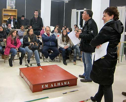 El viernes 13 de diciembre a las 8,30 de la tarde se inició la asamblea urgente para tratar la nueva ubicación de la Escuela de Música de Alhama de Granada, con la presencia de padres, alumnos y profesores por parte de la escuela y de Matilde Molina, Pablo Ariza y Jesús Ubiña por parte del Ayuntamiento.