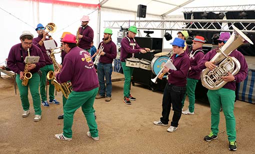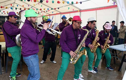 A las dos de la tarde, se degustó un suculento plato de migas cocinadas por José Manuel Benítez (el Gallo), las migas se hicieron con torreznos, chorizo y pimientos, que dio para 350 raciones. Colaboraron carnes y congelados Refuén, y cervecería Chicho. Mientras la gente comía, la charanga “Llena que nos vamos”, amenizaba la fiesta.