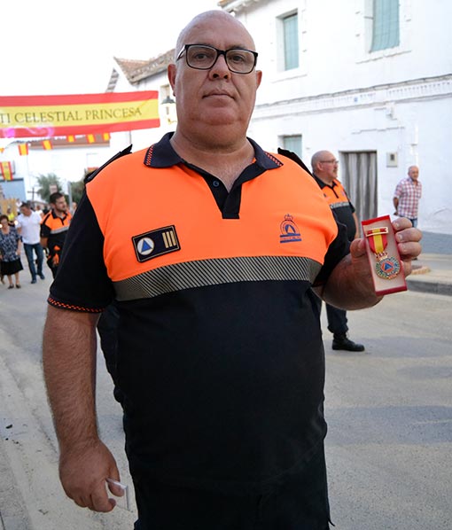 Ante un buen número de representaciones religiosas y parroquias, entre ellos el rector de la Basílica de San Juan de Dios, así como de alcaldes y concejales de los pueblos vecinos, se procedió a la entrega de las respectivas insignias por parte de la Agrupación Local de Protección Civil y de la Guardia Civil. En primer lugar, intervino el jefe de Protección Civil de Arenas del Rey, Blas Francisco Fernández, quien agradeció la presencia de sus compañeros de Cijuela, Jayena, Vegas del Genil y de Arenas del Rey y ofreció una pincelada sobre la historia de la Virgen de los Dolores. A continuación, lo hizo la Guardia Civil, en nombre de la cual intervino Pedro Quesada y el sargento Olivares, que le ofrecieron un alfiler de plata, que al igual que la insignia anterior le fue colocada a la Virgen por la joven forneña, Nuni Alodia.