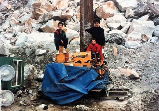 En septiembre del 84 fueron paralizados todos los trabajos en la cantera de mármol del Macho, que funcionaba desde 1980. Y ahí empezaron mis peripecias hasta terminar en Turquía. Mi empresa me trasladó a otra cantera a Murcia, allí Conchi y Andrés pasaron cinco años. En 1989 se volvió a reabrir la cantera del Mancho, y ya volví como responsable de la cantera de la Resinera, donde estuve trabajando hasta su cierre.