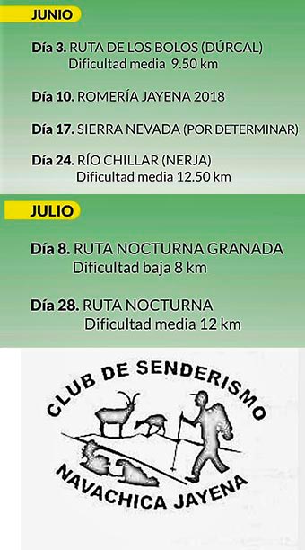 El sábado anterior había tenido lugar una ruta de convivencia y hermanamiento con el club de senderismo de La Maroma, de Alhama de Granada y Zafarraya, consistente en el ascenso a la cima que le da nombre al club senderista jayenero, la de Navachica, en La sierra de La Almijara, con dicha ruta se cerraba la temporada 2017 para el club jayenero.