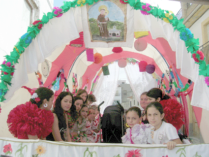 12/06/2005.- Atrás queda un año de trabajo para los doce matrimonios de romeros. Rifas, lotería y recaudación por la publicidad en el programa se convierten en las principales fuentes de financiación para sufragar los gastos que una celebración festiva de estas características supone en las que no pueden faltar flores para el santo, chocolate y bollería, anís y coñac para el desayuno en la plaza de la Constitución, cerveza y paella, grupos musicales,… Pero gracias a este esfuerzo todo un pueblo vive una jornada inolvidable que muchos jayeneros y jayeneras ausentes aprovechan para regresar a su tierra natal.