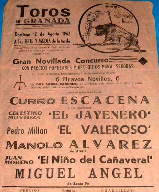 - http://www.todocoleccion.net/cartel-toros-plaza-granada-curro-escacena-jayenero-valeroso-ano-1962~x27929828