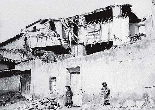 Lugar actual y como quedó la posada de la Estrella en 1884, afectada por el terremoto