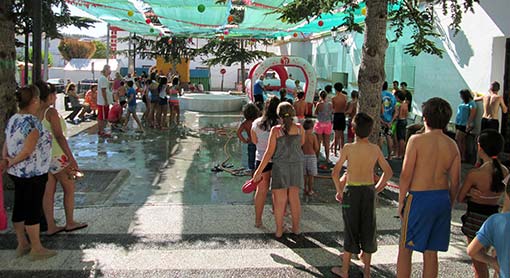 Finalmente la jornada del domingo que cerraba feria, sorprendió con la degustación de sardinas y refrescos, que estuvo animada por la charanga Llena que nos vamos. Como no la esperada fiesta del agua y espuma, congregó un gran número de público sobre todo joven.