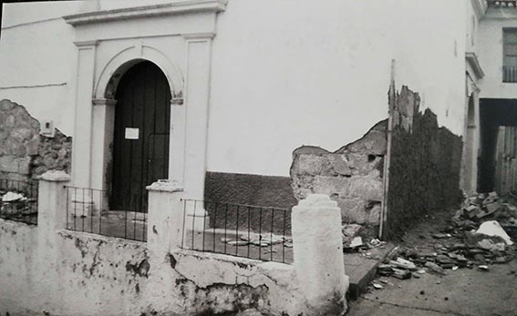 Obras sobre la fachada de la iglesia Parroquial de Jayena (año 1995)