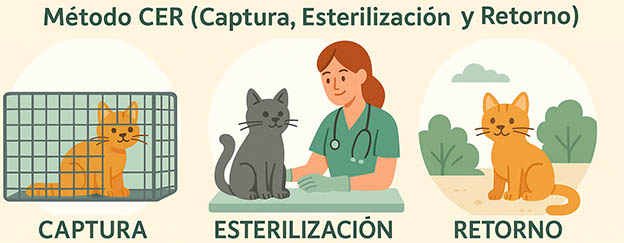 En cuanto a la gestión de colonias felinas se implantará el método CER (Captura-Esterilización-Retorno) es la estrategia más eficaz y ética para controlar la superpoblación de gatos callejeros y mejorar su bienestar. El método requiere un seguimiento continuo de la colonia, registrando altas (nacimientos/abandonos), bajas y esterilizaciones.