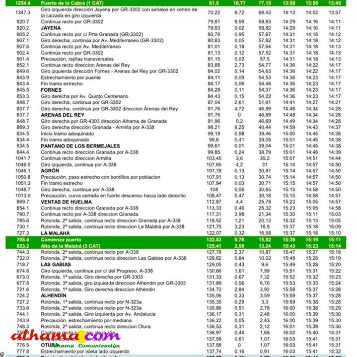 La poblaciones de paso, o afectadas por la proximidad, y que tendrán cortes de tráfico por estar en la ruta, son: Jayena, Arenas del Rey, Los Bermejales Agrón, Escúzar y la Malahá.